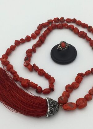 Collana in corallo del Mediterraneo, nappa con coppetta in m